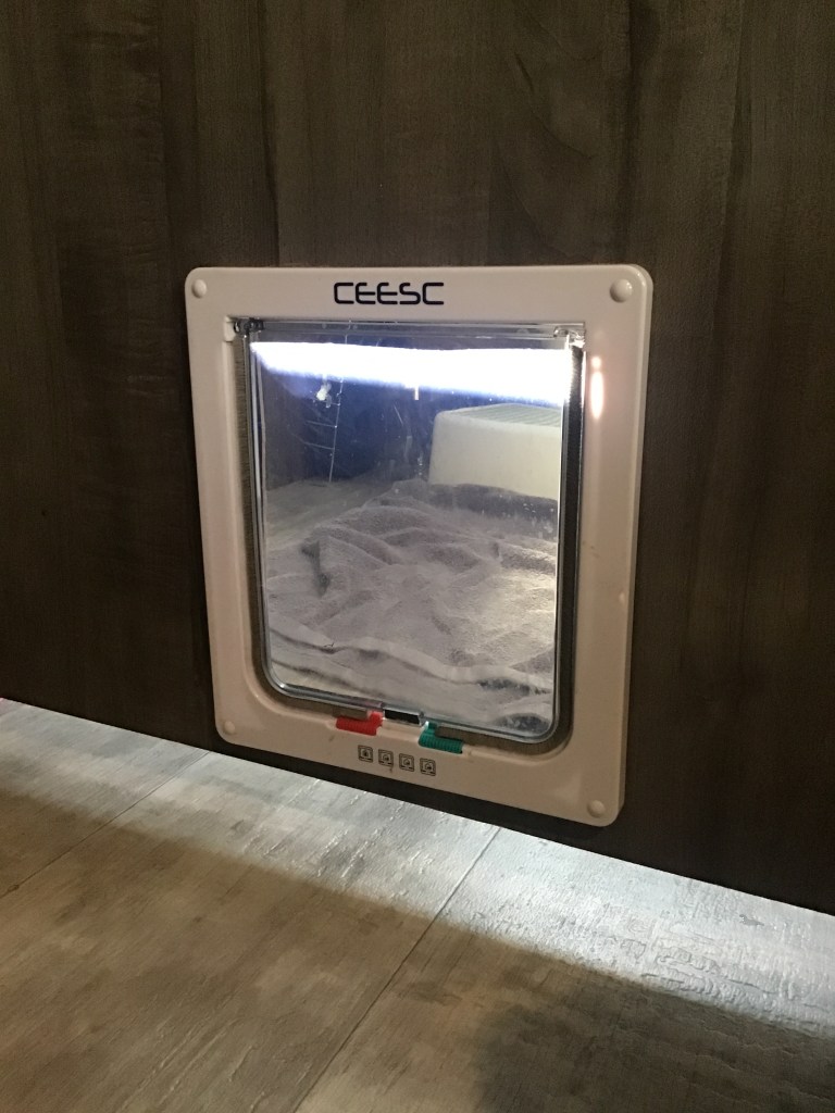 Since we moved into the RV with cats, we were prepared to make a few modifications to accommodate litter boxes, feeders, and anything else they needed.